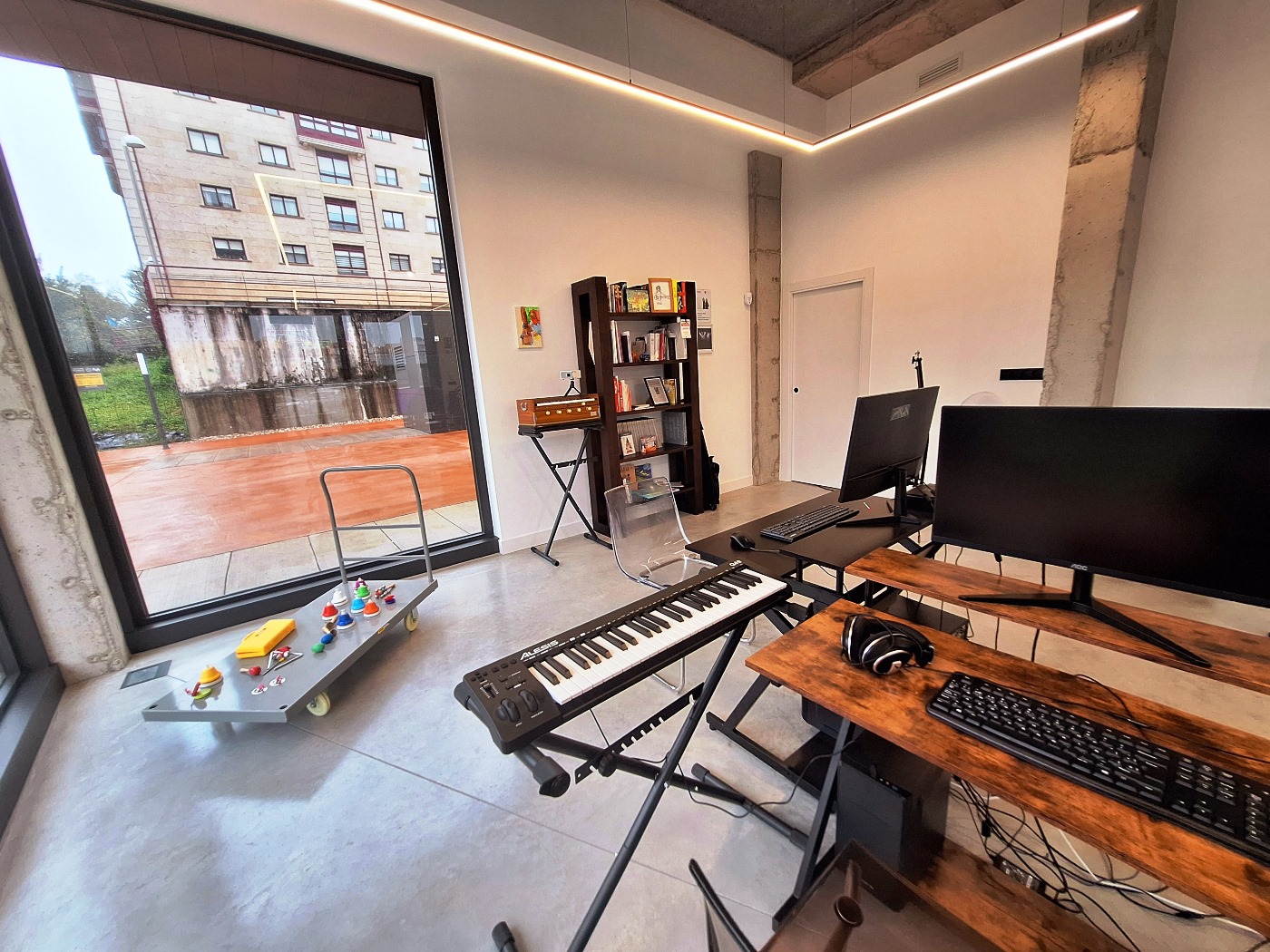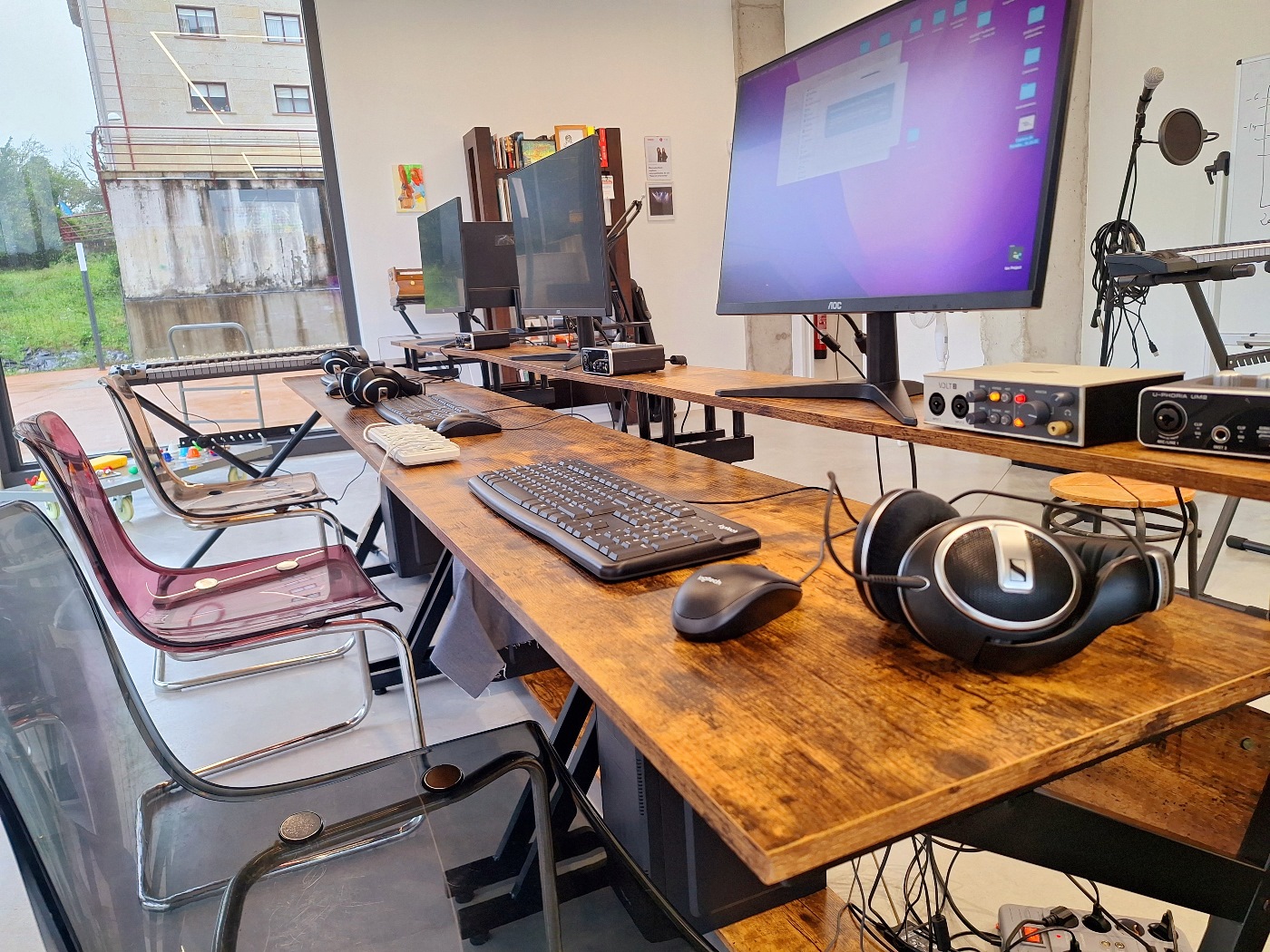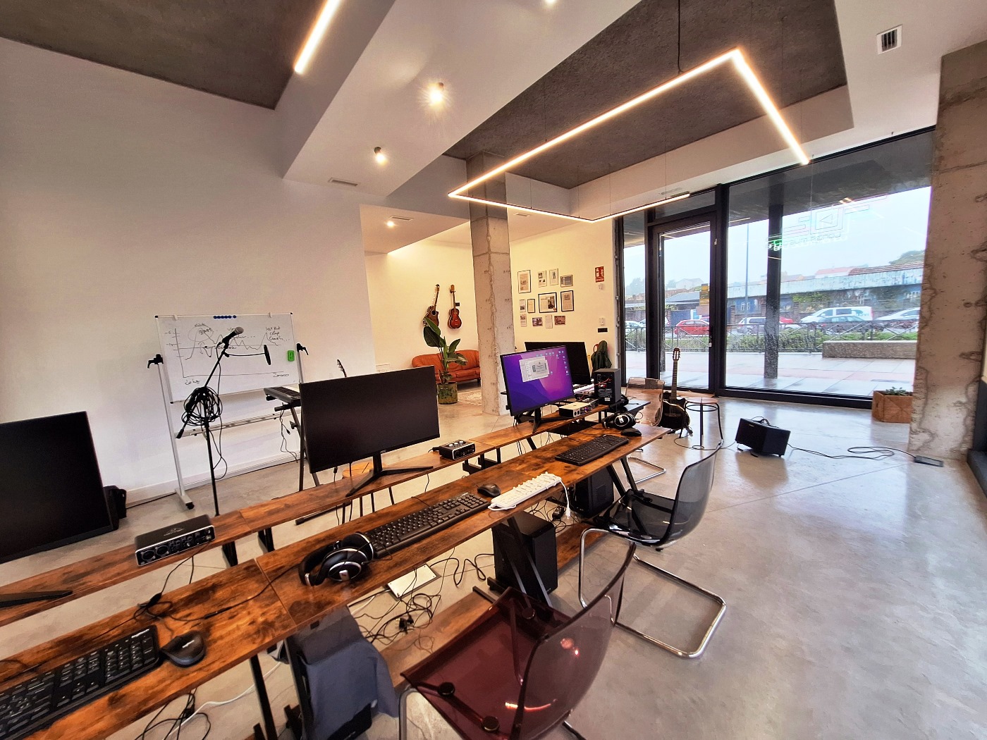 Tenemos otra parte que funciona como estudio de grabación (Home Studio) donde quien quiera puede grabar sus podcast o aprender a hacerlo, grabar y producir tus canciones con instrumentos reales y virtuales, editarlas, mezclarlas, masterizarlas y lanzarlas
